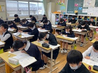 3時間の授業では、どの学級でも、真剣に話し合う姿が見られました。持ち帰ったワークシートから、子ども達が何を学び、自分の生き方にどう生かそうとしているのか、保護者の皆様にも感じ取っていただけたのではないかと思います。ワークシート裏面の保護者コメントもありがとうございました。ご家庭でも真摯に話し合っていただけたことが伝わってきました。(竹組は、始業式に提出をお願いします。)私たちも、この機会に自分の人権感覚を見つめなおし、前向きに頑張ろうとする子どもたちの背中を、力強く支えていくことができる大人でありたいと改めて感じました。