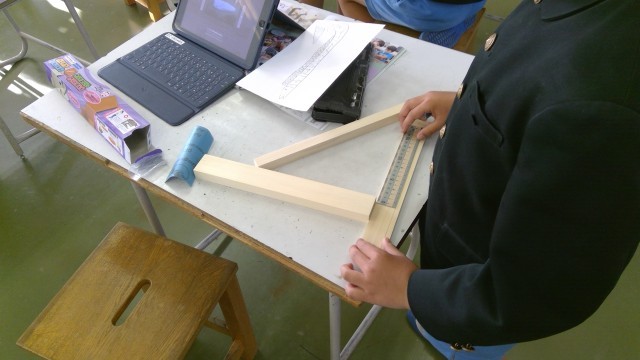 作品のイメージを膨らませ、どんなものを作りたいか紙にデザインし、設計図を基に、木材に印をつける作業をしました。