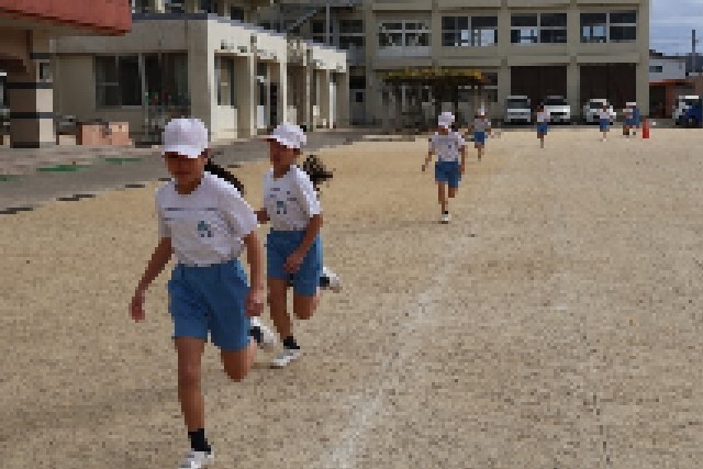 子どもたちは、寒さに負けず、各々が自己ベスト更新を目指して一生懸命走りました。