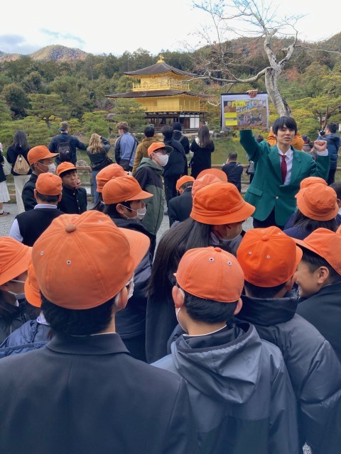 朝、かなり冷え込み、旅行先での寒さも心配していましたが、天候にも恵まれ、元気に1日目を過ごしているようです。写真は、東大寺・金閣寺です。