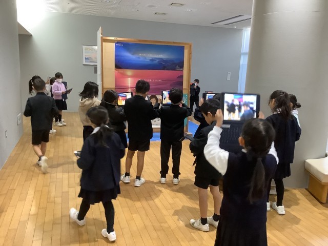 今日2年生は、町探検でマリンウェーブに行きました。マリンウェーブという名前の由来や、どんなイベントがあるのかなど知りたかったことをたくさん質問して答えてもらいました。また、普段は見られないマーガレットホールの舞台裏も見せていただき、わくわくする児童の様子が見られました。「将来、僕もこんな場所で演奏をできる人になりたい。」という素敵な声も聞こえてきました。