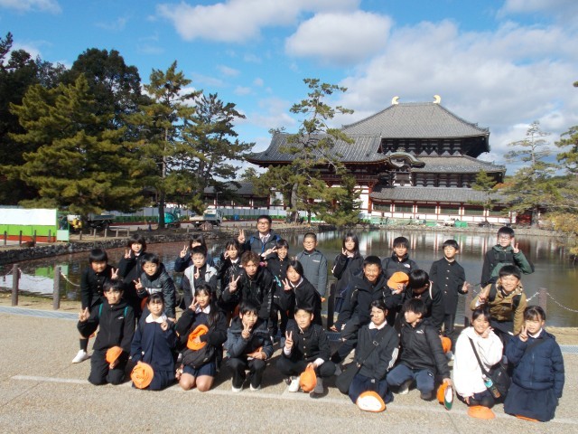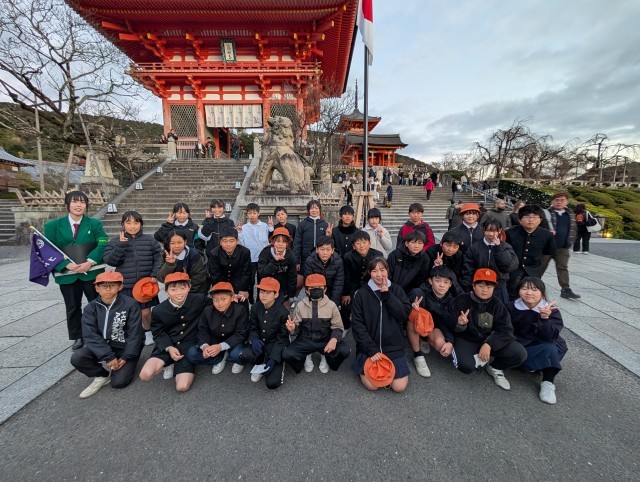 1日目の、奈良、京都では、歴史学習で学んだ歴史的建造物を見学し先人の知恵や努力に思いをはせました。子ども達は、奈良の大仏の大きさに驚き、金閣では、絢爛豪華さに感嘆の声をあげていました。清水寺では、清水の舞台からの紅葉、夜景を楽しむことができました。