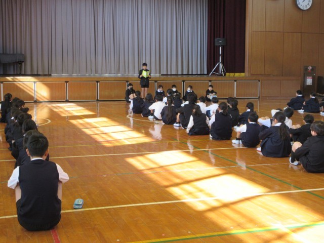 14日(水)の昼休みに6年生の児童会役員の6名から児童会役員をして学んだことや5年生へのメッセージを聞きました。5年生は真剣に話を聞き、6年生になる気持ちを高めていました。