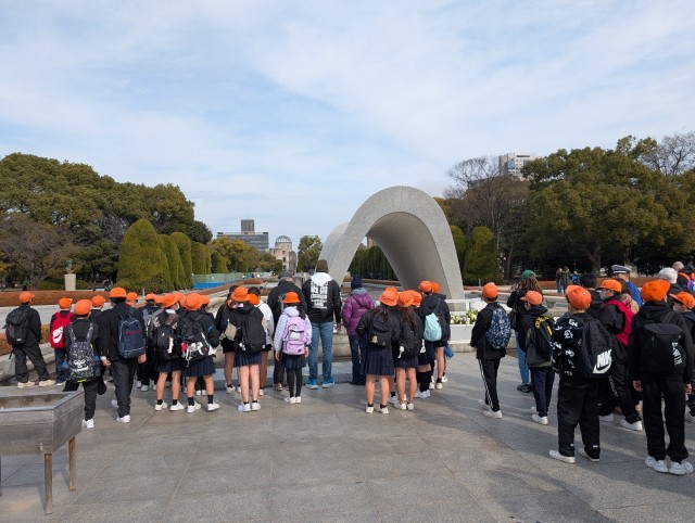 今回は、広島平和記念公園と資料館へ校外学習に行き、平和を祈念するモニュメントや、原子爆弾の被害と平和への思いを伝える資料館の展示を見学しました。