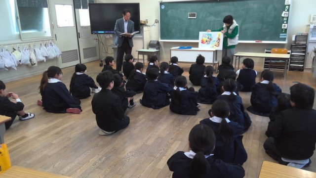 朝、今年3回目の図書ボランティアの方が来て、本の読み聞かせをしてくださいました。子どもたちは楽しくお話を聞いていました。