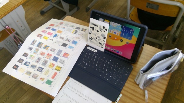 IBユニット6の探究はさらに深まりを見せています。本時は、猪熊弦一郎さんの60もの作品の中から、自分の心に最も響いた「お気に入りの一枚」を選び、紹介するためのプレゼンテーション作成に取り掛かりました。
