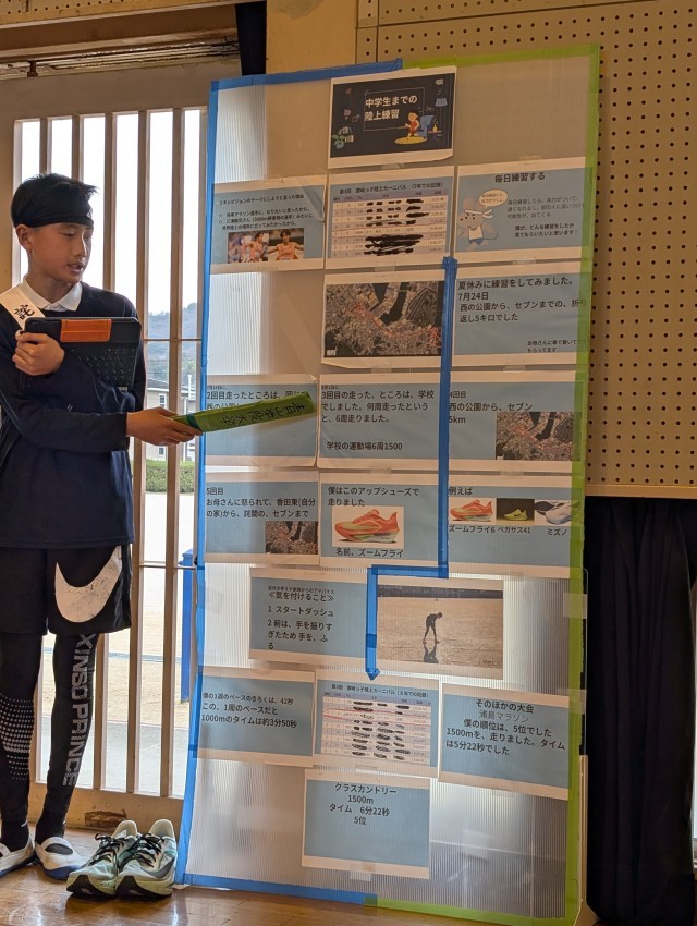 中には、陸上のユニフォーム姿で発表したりサメに扮して発表したり、走り高跳びの実演をしたりする人もいて盛り上がっていました。