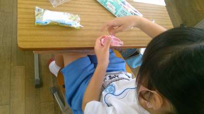 本日の2時間目。2年梅組さんは図工の授業です。「くっつきマスコット」を作っています。「くっつきマスコット」とは何でしょう。おそらく、紙粘土でマスコットを作って、それに磁石を埋め込んで、「くっつくマスコット」を作るようですね。