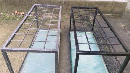 体育館の入口に置いている傘立て2台のペンキ塗りをしました。
