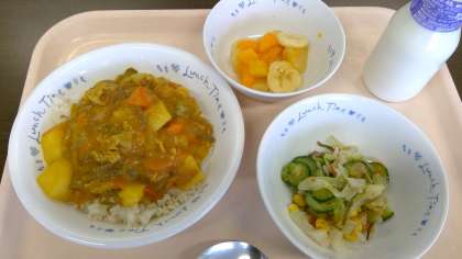 今日は、6年竹組さんが決めた具が、カレーに入っています。詫間小学校オリジナルカレーの第2弾です。今日、カレーに入っている具は、「トマト、ピーマン、こんにゃく」です。