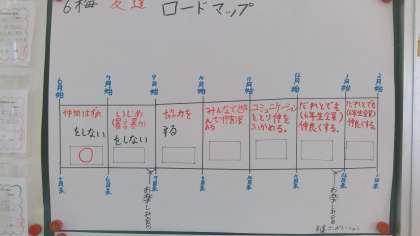 背面黒板を何気なく見ていると「友達コーポレーション」さんが「6梅友達ロードマップ」というのを作っていました。他にもSD会社や株式会社生活というのも掲示していました。この取組もステキです。