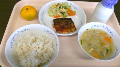 麦ご飯 牛乳 鯖のごまみそ焼き