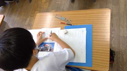 1竹の皆さんは、とても集中していてすごいです。発表もとても上手で、多くの子どもたちが手を挙げています。また、ペア(3人組もいます)でもしっかりと考え、話し合っていました。100点満点です!
