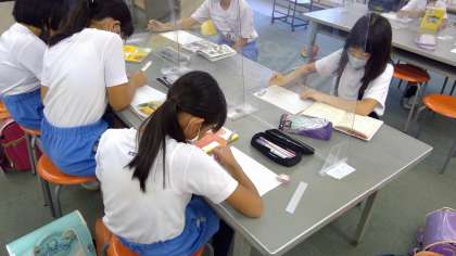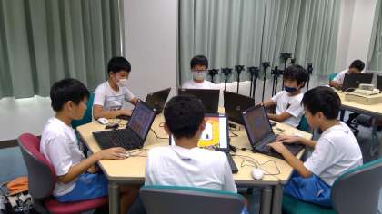 写真は、上から読書クラブ(図書室)、コンピュータクラブ(パソコン教室)、イラストクラブ(教室)の活動の様子です。