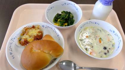 ミルクパン 牛乳 かぼちゃのミートソース焼き