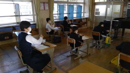 本日の1時間目。6年梅組さんは音楽の授業です。今日は、6梅の担任の先生が1日中出張でいません。しかし、そこは最上級生の6梅の皆さんです。安心しています。音楽の時間も集中して先生の指示をよく聞いて、真剣に学習に取り組んでいます。素晴らしい勉強ぶりですね。
