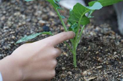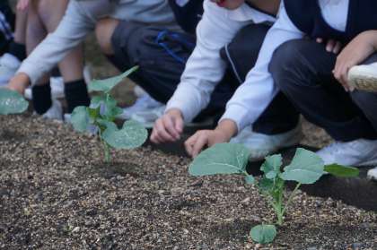 焼き芋が終わり、サツマイモを用いた単元が一段落しました。さて、今、2年生は農園に、サツマイモに替えてブロッコリーの苗を植えています。