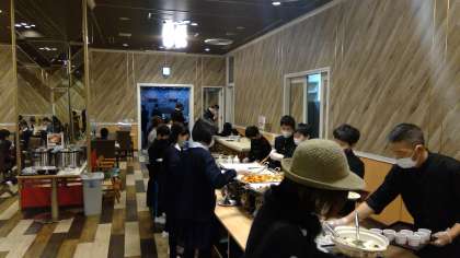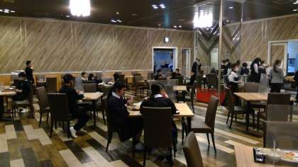 後半の朝食風景です。元気いっぱいの子どもたちと、少し眠そうな子どもたち。でも、しっかり朝食を食べています。いよいよ2日目始動です!