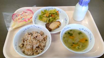 赤飯 牛乳 ぶりの照り焼き キャベツの香り和え