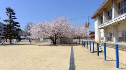 運動場の大きな桜も満開状態です。これだけ大きな木になると迫力がありますね。入学式まで持ってほしいです。