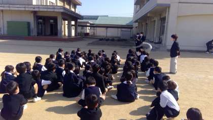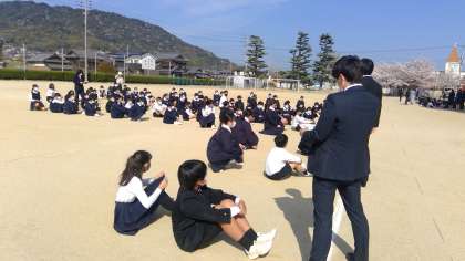 始業式の後、全学年クラスがえがありました。運動場では2年生と6年生がクラスがえをしていましたので、その様子を少しだけ見させていただきました。多分、今日の中で一番緊張した瞬間だったと思います。