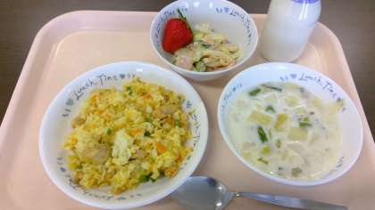 待ちに待った給食が始まりました。初日は、人気の「カレーピラフ」です。今日から、またできるだけ給食をブログにアップします。よろしくお願いいたします。