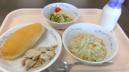 ミニコッペパン・・・ダブル主食の日ですので、コッペパンは小さめです。