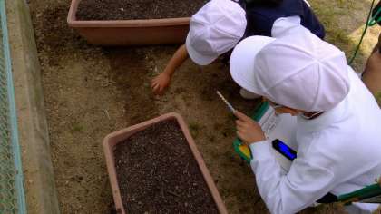 あとで、ダンゴムシとシロツメクサを見つけたよ。