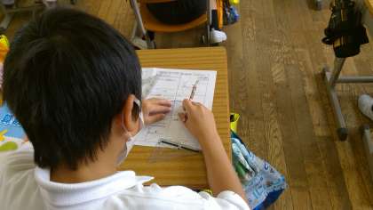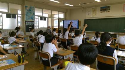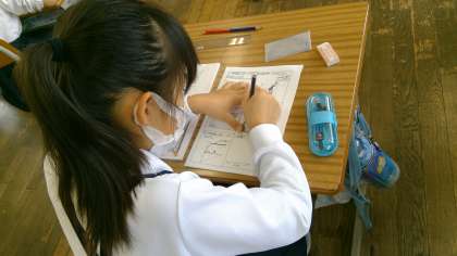 本日の2時間目。4年梅組さんは算数の授業です。4梅さんは、積極的に発表する子が多いですね。活力が感じられます。おもしろいなあと思ったのは、三角定規に、すべり台とサンドイッチと名前をつけているところです。三角定規のうち、直角がある方が「すべり台」、二等辺三角形の方が「サンドイッチ」です。なるほどなあと思いました。
