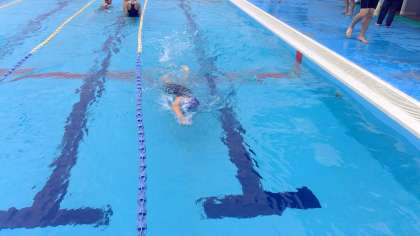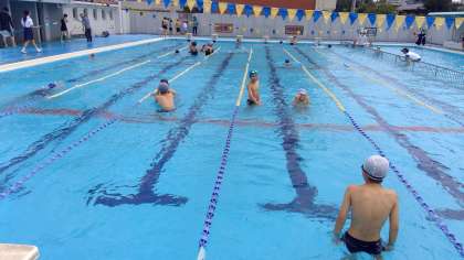 泳力測定をしていましたが、50メートルをクロールや平泳ぎでスイスイ泳いでいる様子を見て「息継ぎ、上手だな!」と、昔の自分を思い出して、感心していました。泳力測定をしていない子も、個人で練習に取り組んでいました。