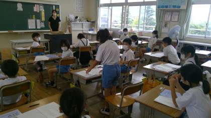 4松さん、4竹さんと同じで、今日は、「人権…みんなが幸せになる権利」について勉強していました。何と6時間目です。5時間目は、「日本一の七夕をしよう」という児童会活動がありましたので、とても疲れていると思いますが、みんながビシッと学習に取り組んでいて素晴らしいと思いました。4梅さんの素晴らしいところは、発表をしている人の方を向いて聞いているところです。