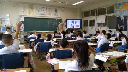 「ぼくは、カレーライスを作ったことを話します。」というふうに、花火をしたこと、花火を見たこと、バーベキューをしたこと、プールで遊んだこと、遊園地に行ったこと、釣りに行ったことなど…。どんどん手が挙がっていきますね。