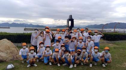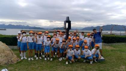 流さんの作品「サキモリ」を囲んで記念撮影です。