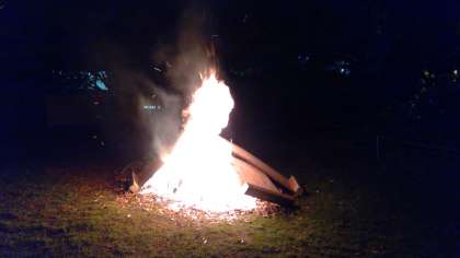 きもだめしも無事終わりました。これから芝生広場で花火タイムです。今年は、雰囲気を盛り上げるため、キャンプファイヤーもしています。