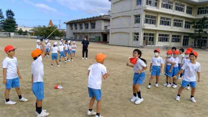 まずは、色別対抗リレーの練習をしています。2回行いましたが、2回とも接戦でした。10月の体育学習発表会でも、がんばってくださいね。