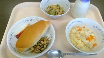 今日は、ダブル主食に加えて、大豆もたっぷりなので、かなりボリューム感のある給食でした。