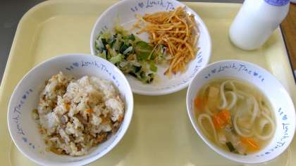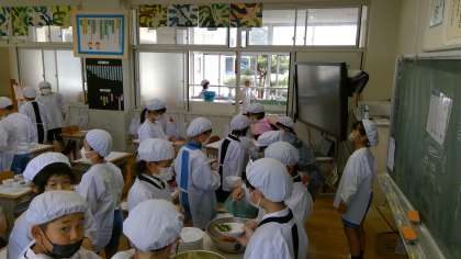 今日は、4年竹組さんと一緒に給食を食べています。給食から下校まで、私が、今日の午後からの担任みたいなものです。今日の給食メニューの感想も聞いてみました。