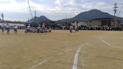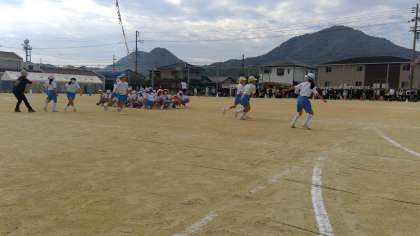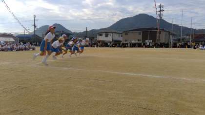 4年生の色別対抗リレーです。全員が全力疾走、素晴らしい躍動感です!