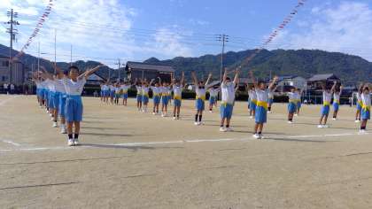 5年生のダンス「夢に向かって2022」です。鮮やかな3色の布を持っての演技、とても美しいです。後半は、なかなか難しいリズム、動きを見事に演じています。