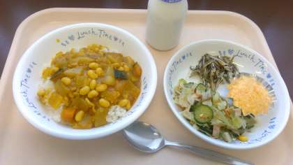 ○詫小スタミナカレー ○牛乳 ○元気サラダ