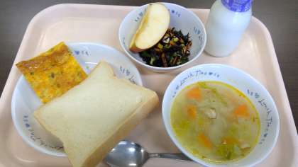 パン、牛乳、じゃがいも、豚肉、卵、ベーコン、チーズ、ひじき、ピーマン、にんじん、たまねぎ、きゅうり、コーン、セロリ、りんご・・・ざっと数えただけでも15種類もありました。見落とした食材や調味料を入れると20種類は超えそうですね。