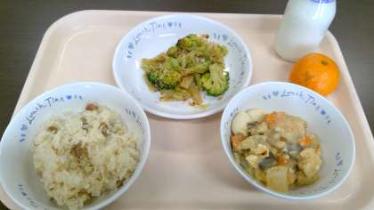 今日の給食の「色」は地味ですが、味は、なかなか「インパクト」があります。帰って来てよかったです。