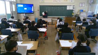 担任の教員がいなくても、全員、一生懸命プリントに取り組んでいますね。
