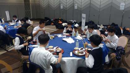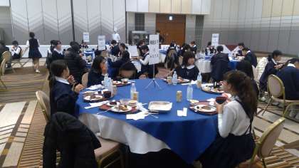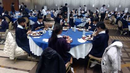 夕食の様子です。保護者の皆様には、今日は、朝早くからありがとうございました。天候にも恵まれ、体調を崩した子どもも1人もいませんでした。修学旅行1日目は、100点満点だったと思います。