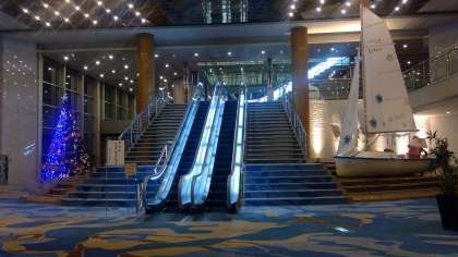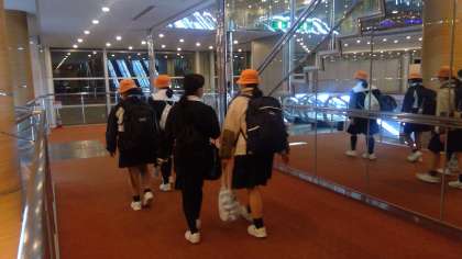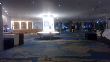 午前6時過ぎですが、女子を中心に、もう朝食会場に荷物を持って集合し始めました。ついでに、びわ湖大津プリンスホテルの豪華なロビー、フロントの写真もアップします。ボーッとしてたら迷子になりそうなくらい広いホテルです。