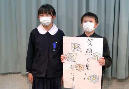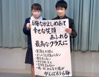 6年生3クラスの「なかよしめあて」の発表の様子です。