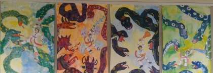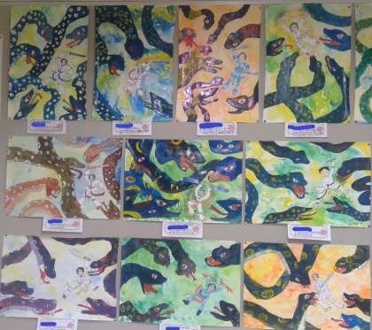 4年松組の教室に掲示している作品です。懇談会や授業参観・学習発表会の時に十分見ることができなかったという方は、お子様にどの作品なのかを聞いて、ゆっくりご覧ください。なお、階段の踊り場に掲示している作品は、後日、アップいたします。