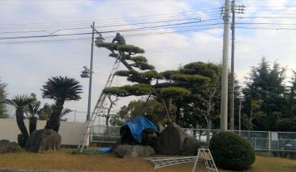 学校メインテナンス49 公開日 2023/01/19 更新日 2023/01/19 学校全体 今日から、プロの方が、校庭の松などの木の剪定をしてくださいます。あんなに高い所までのぼって剪定をするのですね。