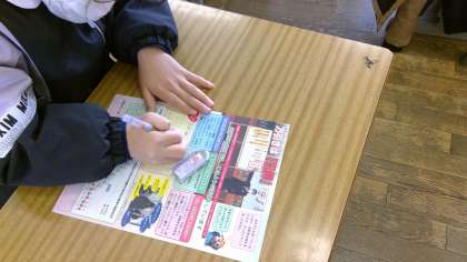 2月2日、4年生では、香川県警の方をお招きし、非行防止教室を行いました。各教室で非行とは何か、万引きをしたらどうなるか、インターネットの危険性などを学びました。DVDを見て考えたり、もし万引きに誘われたら…と役割演技をしたりと、具体的に教えてくれました。最後に書いた「わたしのちかい」を実践して、犯罪から身を守ってほしいです。