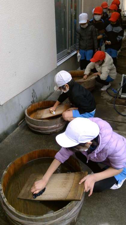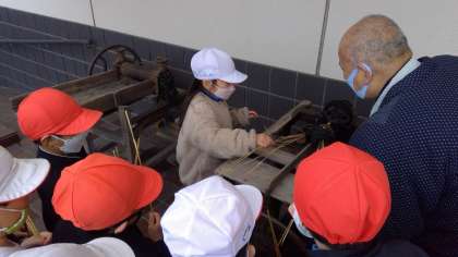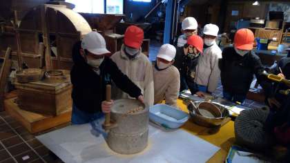 2月3日(金)に詫間町の民俗資料館に見学に行きました。写真やイラストを見て事前に学習していたこともあり、実際の道具を目にした子どもたちは大喜び。体験では、火起こし、縄ない、洗濯板での洗濯、ほうろくを使っての大豆煎り、そして臼で大豆を粉にする粉ひきをすることができました。昔の人の生活の様子、工夫や知恵に触れることができ、貴重な時間となりました。